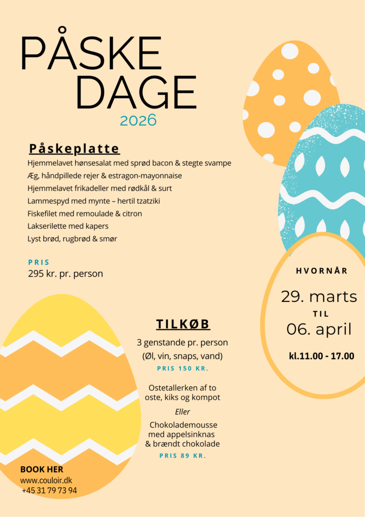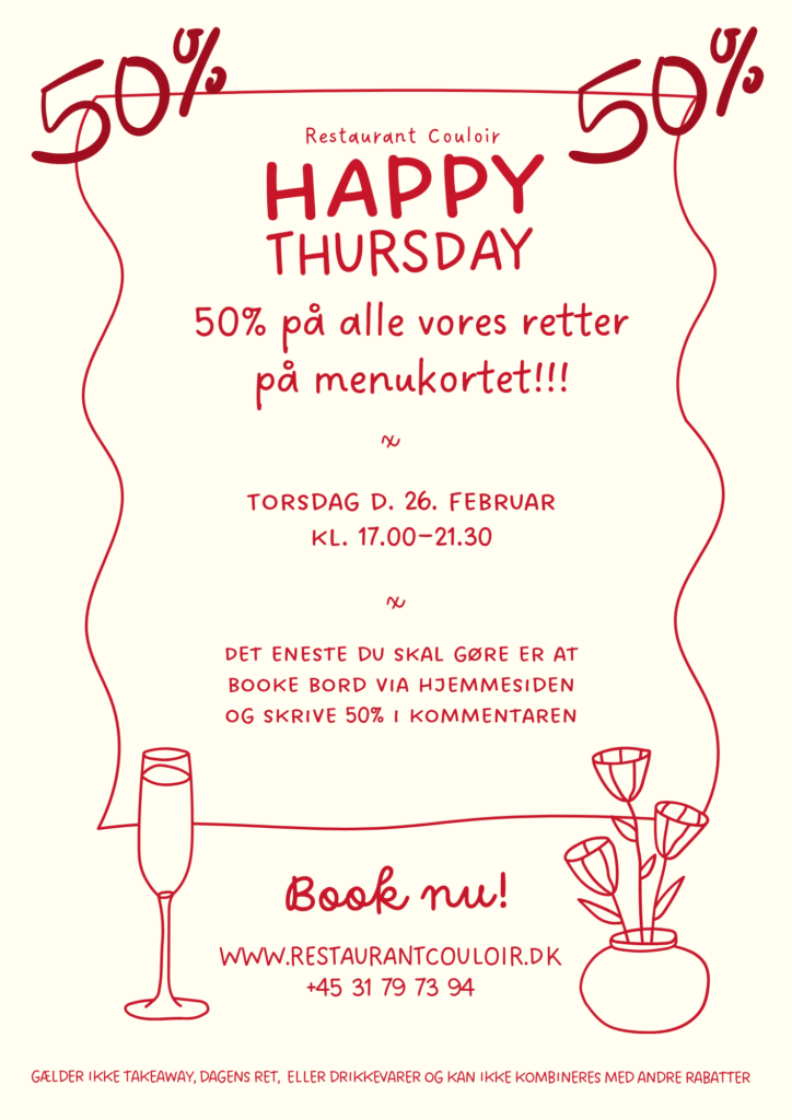 Hos Restaurant Couloir handler det om at skabe oplevelser. Vores unikke beliggenhed i København gør os til det oplagte valg, når du søger høj kvalitet og lokal forankring. Vi tilbyder: